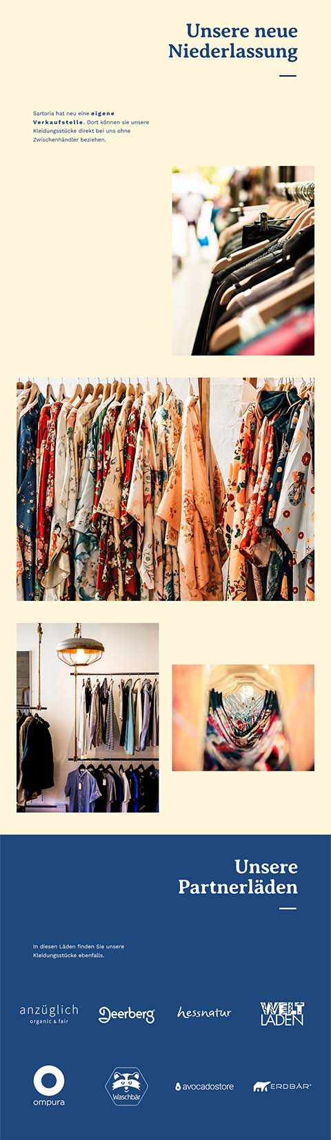 Sartoria is a store with ethically produced fashion. Supply chains are kept short, and every worker get payed fairly.